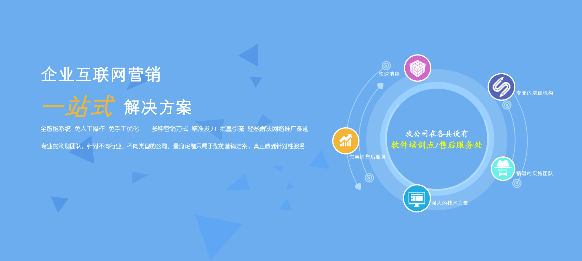 我公司在各縣設有軟件培訓點和售后服務處。本公司有專業的培訓機構、精湛的實施團隊、強大的技術力量、完善的售后服務。承諾:“快速響應,隨叫隨到”。絕不會因我們的原因影響會計人員的結賬、報表等工作。